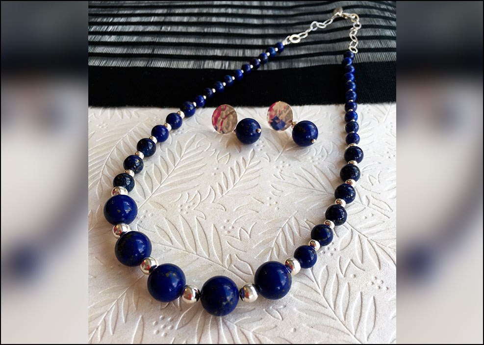 Juego Collar y Aretes en Lapislázuli con Plata 0,925